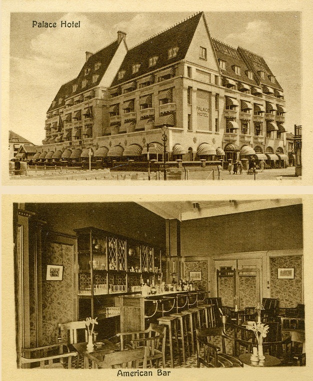 Ik schreef al vaker over het oude Palace Hotel (wanneer heb ik niet geschreven over het oude Palace Hotel?). Maar in een stukkie van lang geleden had ik het over de trots van het toen net geopende hotel (in 1912): een heuse American Bar (soms met nog meer chic aangeduid als “Bar Américain”). Doorgaans werd daarmee in die tijd een type bar aangeduid, waar men verschillende mixed drankjes serveerde, zoals cocktails, maar ook gin-tonics e.d. en waar de inrichting een beetje Art Deco-achtig was. Dat Art Deco kan ik op de foto niet zo heel snel ontdekken – de stoelen hebben er iets van weg – maar sfeervol moet het allemaal zeker geweest zijn en de drankjes waren hier heerlijk nipbaar.