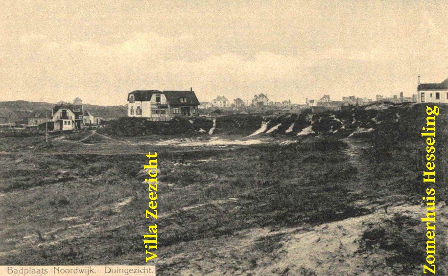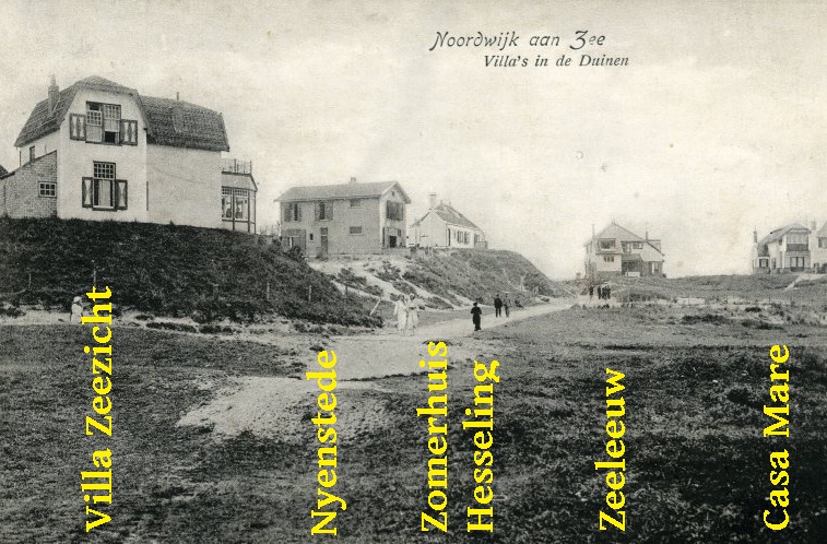 Mijn aanknopingspunt is achteraf het bouwseltje helemaal rechts op de bovenste foto: Zomerhuis-Hesseling, gebouwd door H.P. Berlage op de plek van het latere Pension Hoogduyn. Hoek Noordboulevard en Jan van Henegouwenweg. Je kijkt als het ware richting het oude zeedorp, dat echter aan het oog onttrokken wordt door dat ‘hoogduyn’ dat er voor ligt. Je kunt ook zeggen dat het oude zeedorp lekker beschut in een kommetje lag (wat ook zo was). Wel goed zichtbaar de villa’s en pensions in de Zuid. Links de Villa Zeezicht en dan gaat het vervolgens in een bocht het dorp in: latere Golfweg? Nic.Barnhoornweg? Karel Doormanstraat? Zo ver reikt mijn Binnense kennis niet meer. Hieronder ter oriëntatie nog een ander beeld van de Jan van Henegouwenweg.