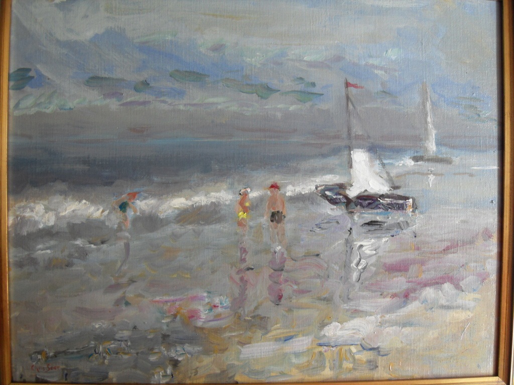 De Haagse schilder Christiaan ‘Chris’ Soer (1882-1961) werd opgeleid aan de kunstacademie in Den Haag. Hij schilderde veel landschappen, stads- en dorpsgezichten en ook strandgezichten, zoals dit uit 1935 bij Noordwijk.