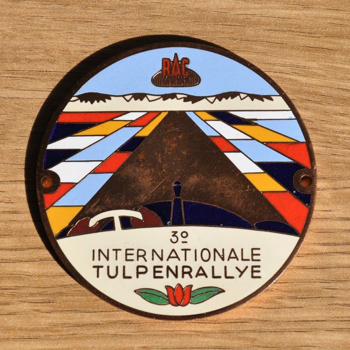 De derde Tulpenrally werd gereden in 1951, start en finish in Noordwijk aan Zee, meer in het bijzonder bij Huis ter Duin. Dit is de officiële herinneringsplaquette. De rally werd gewonnen door de Brit Ian Appleyard met een Jaguar XK 120. Hieronder het vertrek van deze succesvolle combinatie bij Huis ter Duin.