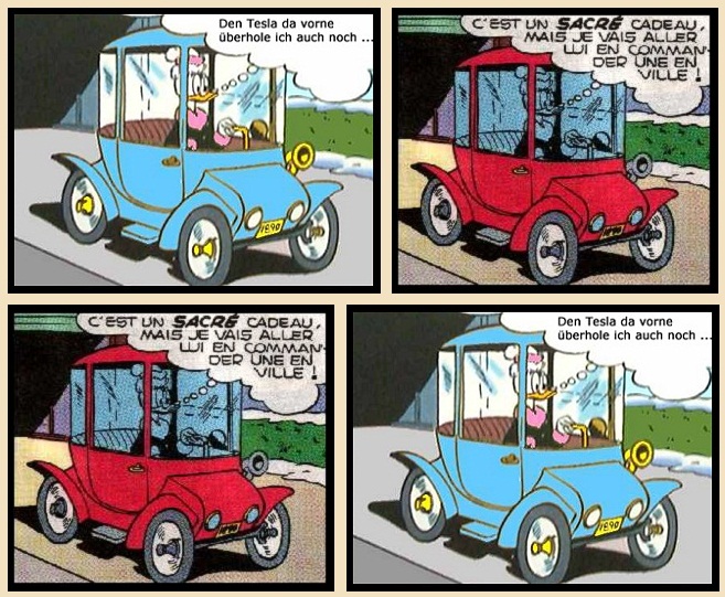 Nota Bene: iemand suggereert dat het hier zou kunnen gaan om het automobiel van Oma Duck. maar afgezien van de vraag wat Oma Duck in deze contreien in eendesnaam te zoeken had, lijkt dat automobiel niet op deze: