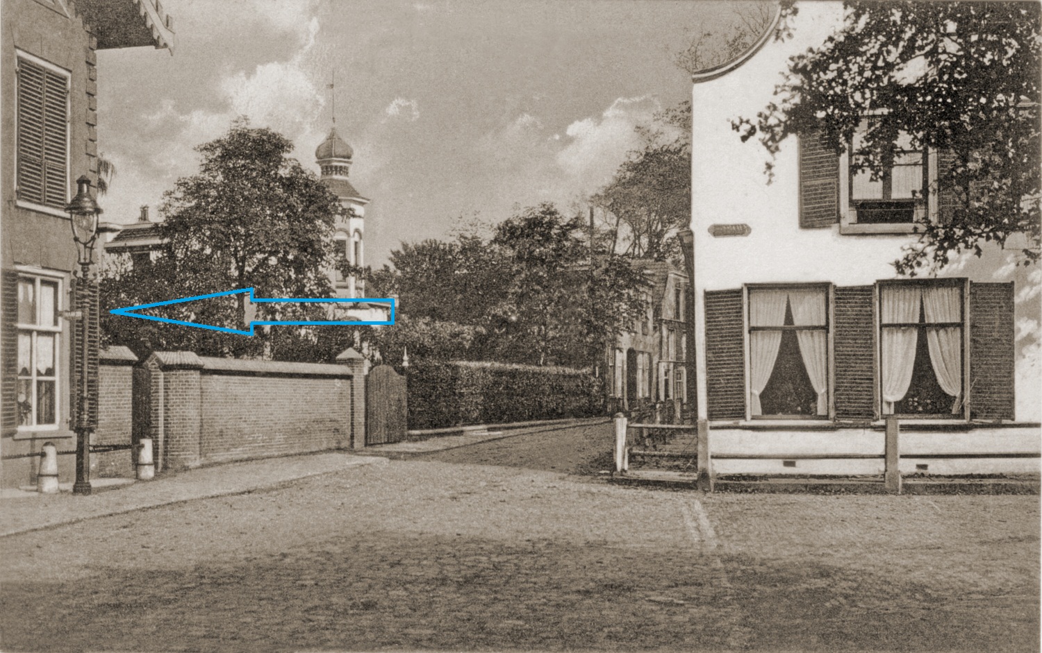 Op deze hoek kom je ook terecht als je een paar alinea’s eerder over de brug rechts de Heilige Geestweg was ingeslagen. Vanaf hier word je door de Kerkstraat gestuurd, aan het einde waarvan je dit bord tegen komt: