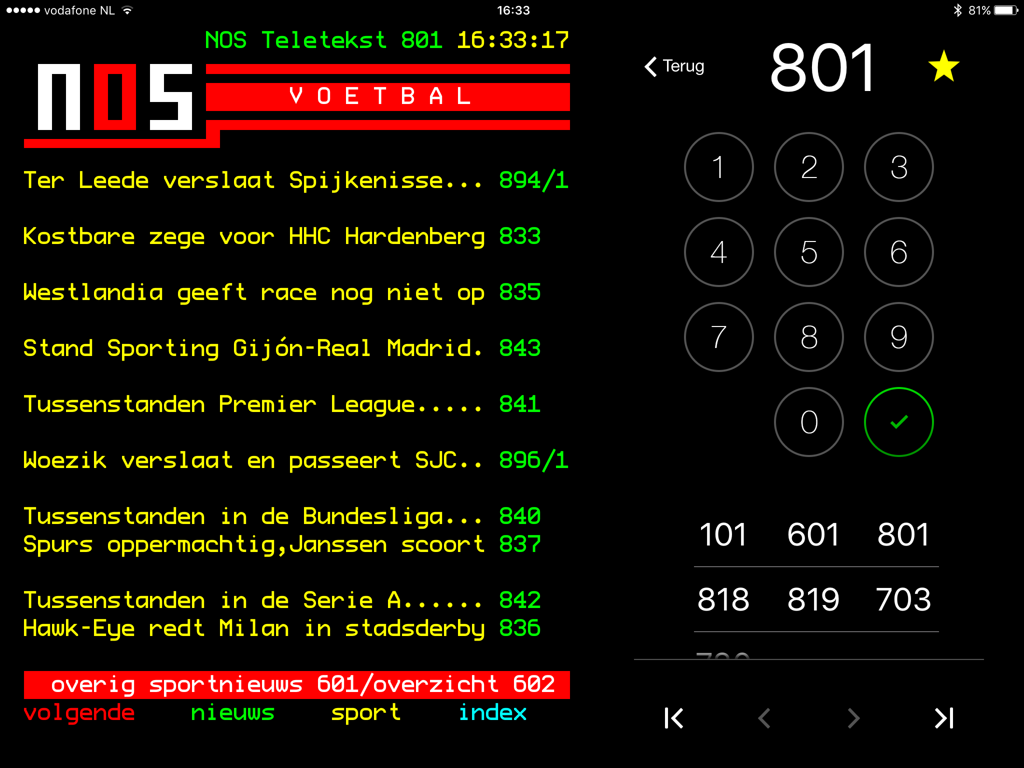 Op een en dezelfde teletekstpagina wordt verwezen naar de tussenstanden in de Premier League en in de Bundesliga, worden Tottenham Hotspur en AC Milan met name genoemd, krijgen we ook een update van Gijon tegen Real Madrid én – last but not least – leren we dat SJC tegen Woezik met 0-2 de bietenbrug is opgegaan.