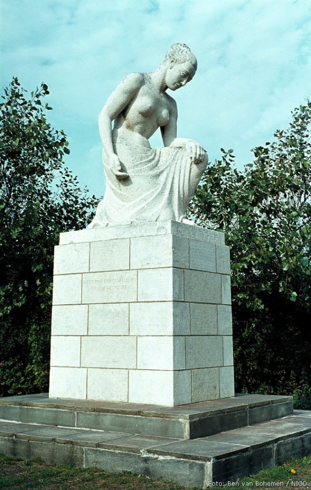 Het oorlogsmonument in Noordwijk is opgericht ter nagedachtenis aan alle medeburgers die tijdens de bezettingsjaren door oorlogshandelingen zijn omgekomen. Het monument is onthuld op 15 november 1952. Niet iedereen was gecharmeerd van Corinne Franzen-Heslenfeld’s beeld van een vrouw met ontbloot bovenlijf. Het dagblad De Telegraaf berichtte: ‘Al te veel onthuld, menen sommige Noordwijkers, die de bedoeling der gemeente om de gevallenen uit de oorlog te eren wel kunnen waarderen, doch het niet noodzakelijk achten, de schaarste aan textielpunten uit de bezettingstijd nog eens op deze wijze in herinnering te brengen.’ (tekst: oorlogsbronnen.nl)