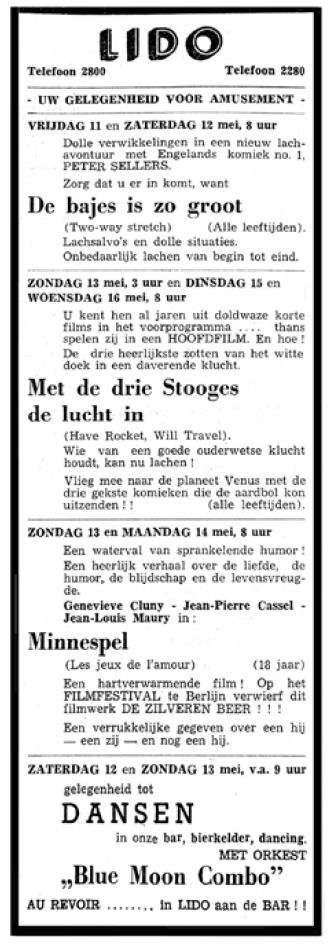 Van “Het Blue Moon Combo” heb ik geen plaatje kunnen vinden. Dat orkest speelde dansmuziek in de bar, bierkelder, annex dancing onderin het roemruchte gebouw.