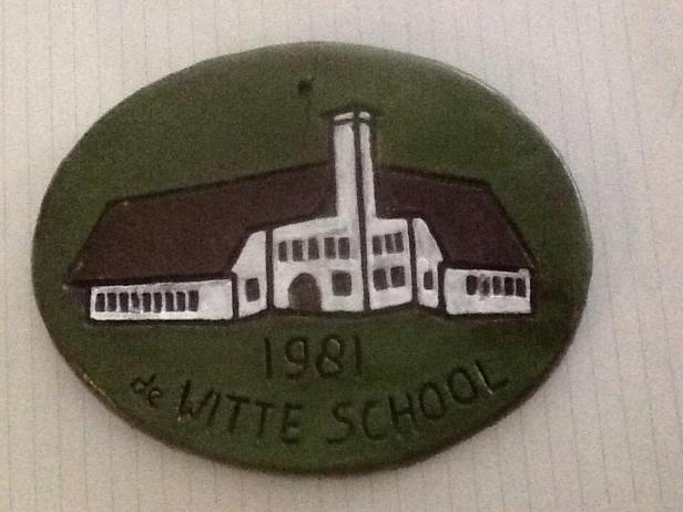 Wat het precies is, weet ik niet. Een tegeltje? Een kleitablet? Stukkie huisvlijt? Hoe dan ook. Het moet kwa datering – 1981 – zijn uitgegeven bij gelegenheid van de in gebruikneming van de Openbare School aan de van Panhuysstraat in 1931. Het vijftig-jarig bestaan dus. Tussentijds ging de school jammerlijk in de hens. Maar hij werd weer opgebouwd en alles bij elkaar bestaat-die dus nu 87 jaar. De school was ontworpen door gemeente-architect en -opzichter C. van Vliet. Die had een beetje zitten spieken bij andere architecten, zoals ik eerder aangaf.