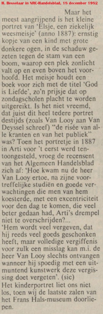 NRC-Handelsblad van 18 december 1982 kreeg Van Looy helaas niet meer onder ogen, want toen was-tie al 52 jaar dood. Maar goed: het schilderij heeft hoe dan ook ooit in Noordwijk gehangen, zo veel is zeker!