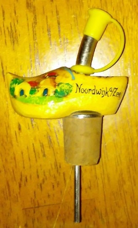 Het zou eigenlijk niet gekker moeten worden, maar het wordt het toch: ik kom op internet deze schenkkurk tegen in de vorm van een souvenir uit Noordwijk aan Zee. Bij het inschenken van een pikketanissie kon je er altijd mooi meer richten en morsen deed je nauwelijks. Maar om op zo’n schenkkruk ook nog het begrip ‘Noordwijk aan Zee’ te drukken, maakt het wel heel apart. Zelfs als ik er alleen maar water mee zou schenken, zou ik er geheel en al bedwelmd van raken.