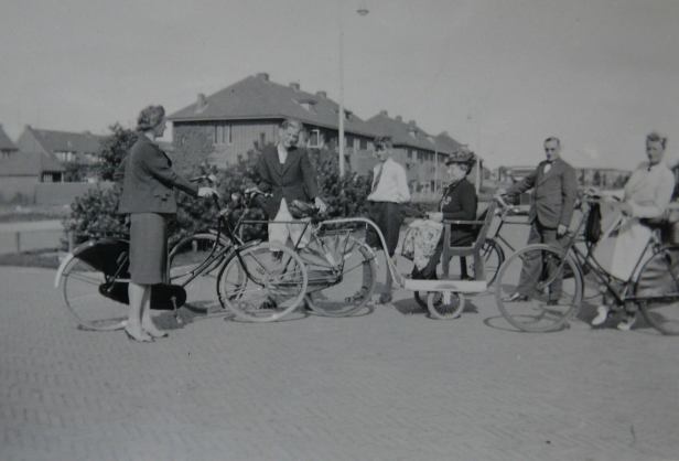 Anita komt op JBEEN met deze prachtige foto van een gezelschap fietsers aan de Van Panhuysstraat in Noordwijk. Bijzonder is de oude dame in een in elkaar geflanste rolstoel, waarin ik in ieder geval niet graag zitting zou durven nemen.