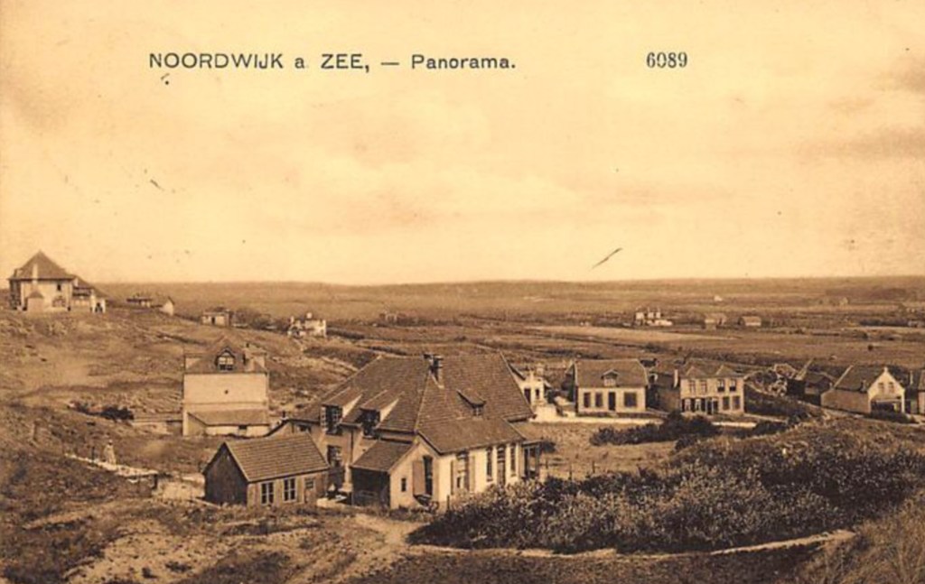 links achter het Dobbelmannduin, achter de voorste villa loopt de Oude Zeeweg met rechts de twee huizen die nu naast de ingang van de Alg. Begraafplaats staan en daarnaast het huis waar ooit de familie Plaatzer in woonde etc.