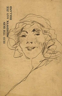Het Frans Hals Museum in Haarlem beschikt over deze tekening, genaamd ‘Vrouweportret’. Het is van de hand van Isaac Israels (1865-1934). Meer weten we er niet van. Alleen dat het vermoedelijk gemaakt is in of nabij Huis ter Duin in Noordwijk. Of op een stukje postpapier o.i.d.van Huis ter Duin. Maar dat is niet zeker.