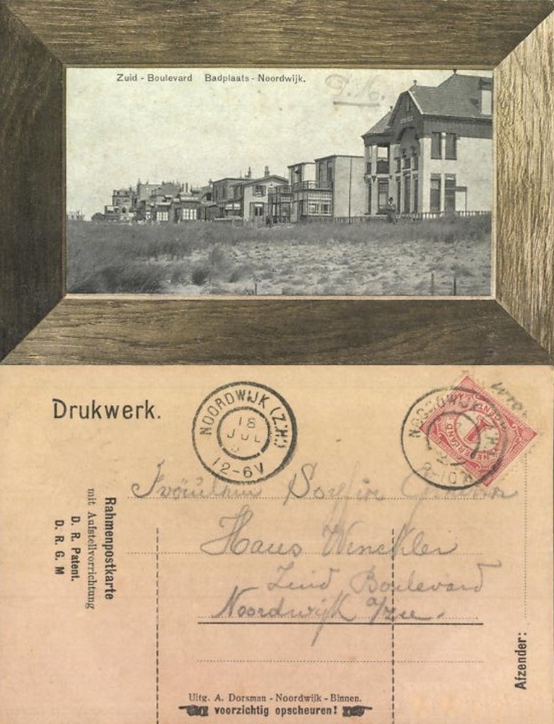 De kaart werd vanuit Noordwijk gestuurd naar iemand in Haus Winckler aan de Zuidboulevard. Ook in Noordwijk.