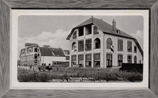 De foto biedt veel van wat al bekend was: Poolstar naast Noordzee, een straatje ertussen. De kaart vermeldt echter dat ene L. Van Wijk ‘ gerant’ was van Pension Poolstar. Een gerant is een bedrijfsleider, of exploitant, niet per se eigenaar.