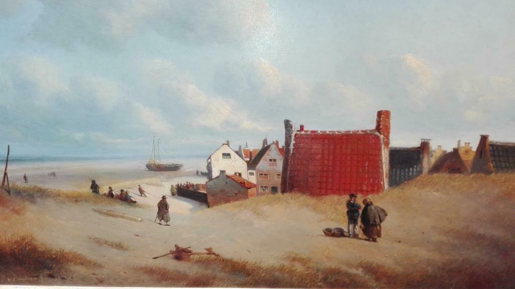 Dit zou een strandgezicht bij Noordwijk moeten wezen volgens de aanbieder van het schilderij op ‘marktplaats’ (a raison van€ 1750). Ik ben er niet zeker van of dat klopt. Mais soit. Een ander schilderij van Willem Lodewijk Andrea kwam hier eerder langs en was wel duidelijk ‘Noordwijk.’