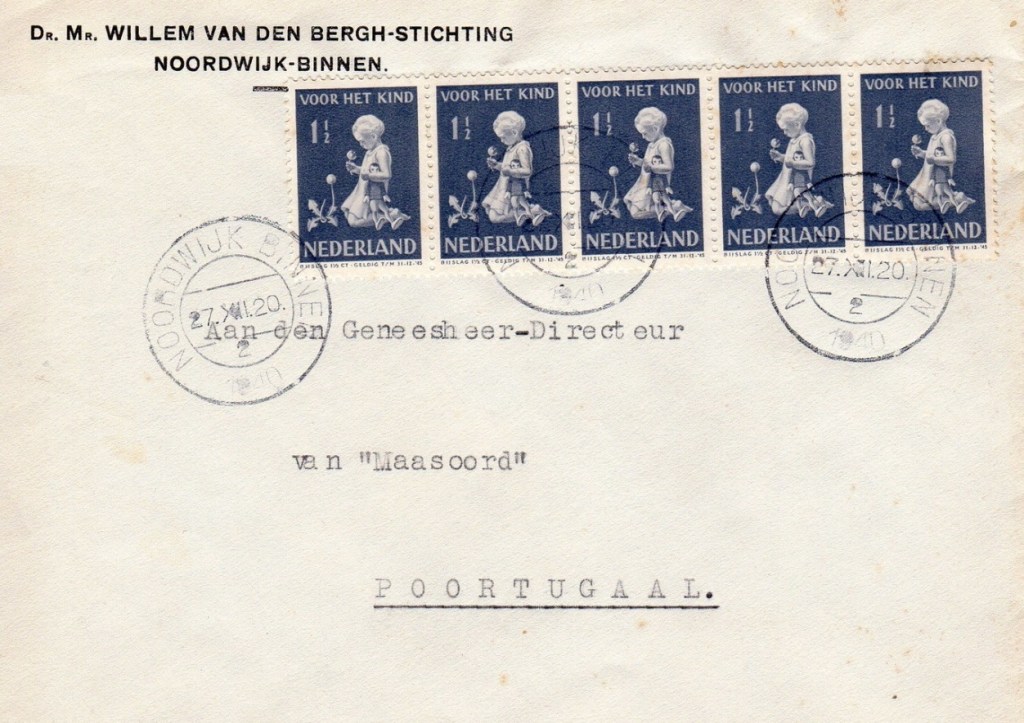 De brief ging in december 1940 van de Van den Berghstichting in Noordwijk naar Maasoord in Poortugaal, beide inrichtingen voor geestelijk gehandicapten. In beide huizen werden in de Tweede Wereldoorlog veel inspanningen geleverd om met name Joodse patiënten verborgen te houden voor de Teutoonse bezetter, iets wat jammer genoeg slechts ten dele lukte. Directeur Jacob Jüch en technisch medewerkerJohannes Molengraaf van de Van den Berghstichting moesten hun pogingen uiteindelijk met de dood bekopen.