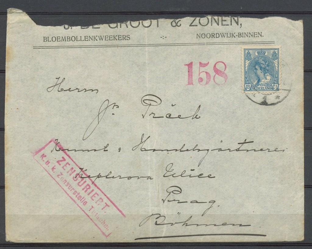 De brief ging uit de Douzastraat helemaal naar Praag in Bohemen (toen nog onderdeel van het Habsburger Rijk). We schrijven 1915 en midden in de Eerste Wereldoorlog kon zo´n brief niet ongemerkt passeren. Hij kreeg dus het stempel van de K und K Zensurstelle. `K.u.K` stond voor Kaiserreich und Königreich, dus het Habsburger Rijk (soms ook wel enigszins bot ‘Kakanië’ genoemd).