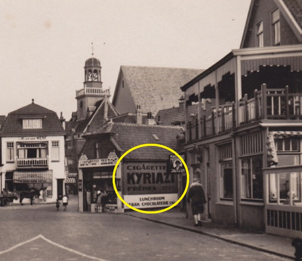 Ook in Noordwijk. Aan het Calisplein bij Lunchroom Zeezicht die de naam ‘Kyriazi’ Ostentatief op de zijgevel had vermeld.