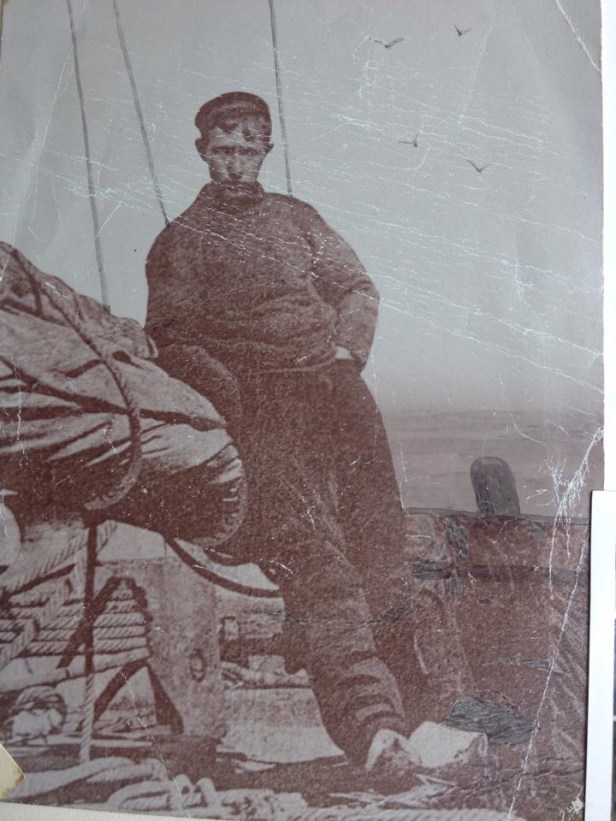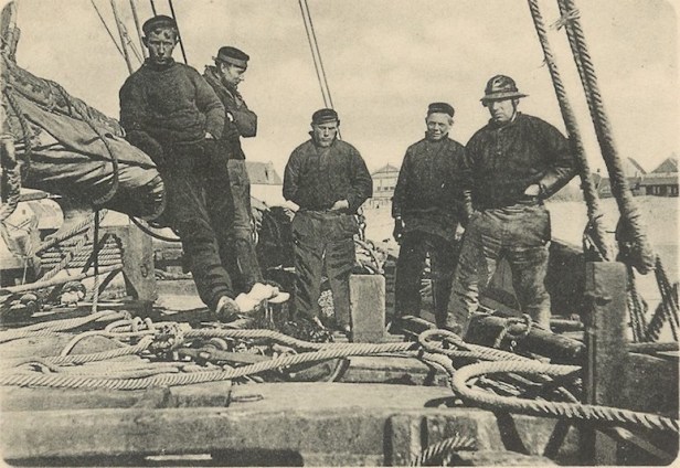 Coby komt op JBEEN met deze foto van een Noordwijkse vissersman op een oude bomschuit. De foto blijkt een beetje geshopt te wezen: de vissersman maakte deel uit van een breder gezelschap dat te zijner eer en glorie gemakshalve maar even werd weggepoetst:
