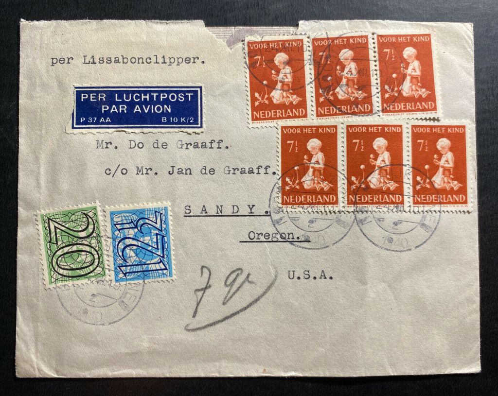 De brief was waarschijnlijk ook van deze Noordwijkse tak afkomstig, want het poststempel luidt Noordwijk, 24 december 1940. Dat laatste was een bijzondere datum. Er was nog wel postverkeer met de VS mogelijk, zij het alleen via een ‘neutrale’ dienst, die werd onderhouden vanuit Portugal. Vandaar ook de toevoeging aan de adreszijde: ‘Per Lissabon Clipper.’
