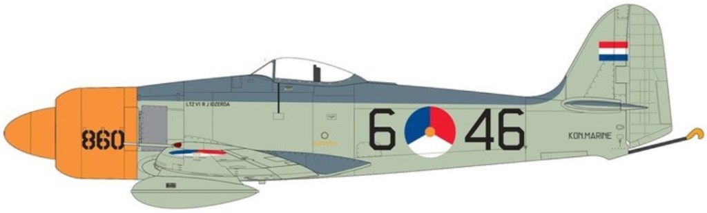 De Seafury zag er in de kleuren van de Marine Luchtvaartdienst zo uit: