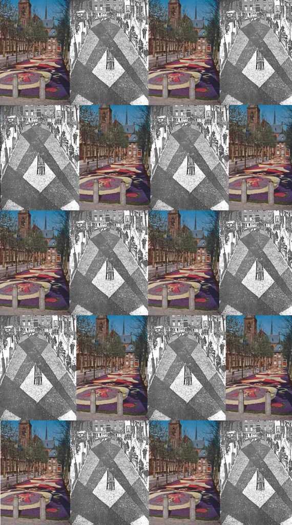 Twee maal een bloemenmozaïek op het Lindenplein in Noordwijk. De zwart-wit versie dateert van 1938, de kleurenversie van ergens eind jaren zestig.