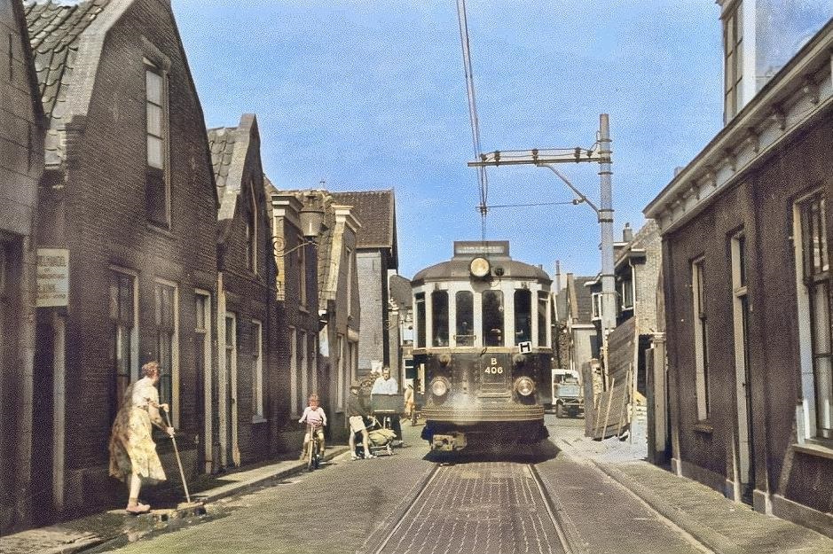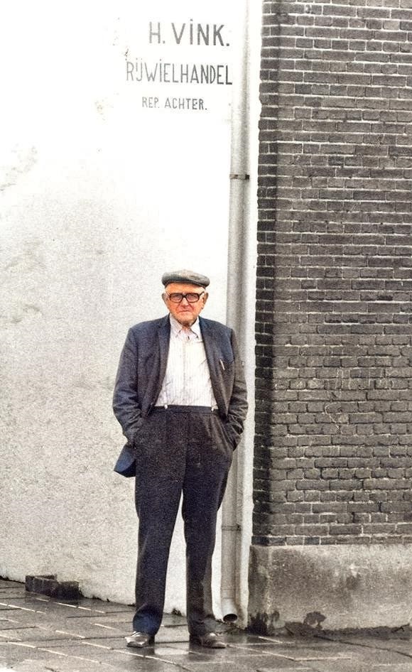 Henk Vink voor zijn slop aan de Zeestraat op een nog nat, pas geschrobt straatje. Dat schrobben gebeurde door zijn vrouw die daarmee vaak in de weer was. Zoals hieronder.