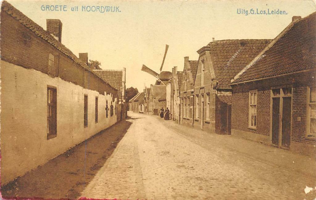 NOTA BENE 2: De fotokaart werd overigens uitgegeven door G.Los te Leiden. Los opende in 1885 al een “boek-, papier- en kunsthandel” aan de Hoogewoerd 65 in Leiden op de hoek van de Koenesteeg. Later gaf hij ook zelf boeken uit, maar blijkbaar dus ook foto-ansichtkaarten. Benieuwd naar andere kaarten van hem van Noordwijk….
