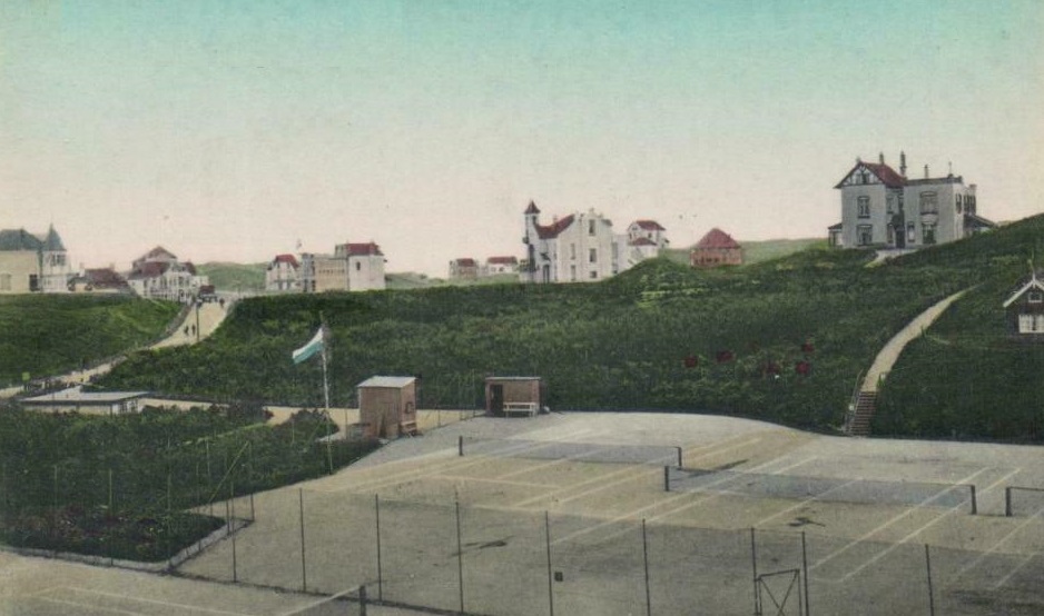 De uitgever had zich nog wel de moeite gegeven om de kaart een beetje in te kleuren, maar op het belangrijkste onderdeel haakte hij af: de tennisbanen zelf bleven steken in asfaltkleuren. Maar het waren óf ‘lawntennisbanen’ (en dan hadden ze groen moeten zijn). Óf het waren gravelbanen (en dan hadden ze rood moeten zijn). We weten het niet.