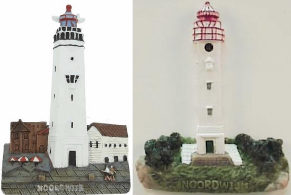 Twee keer de vuurtoren als souvenir van Noordwijk. Beide lijken nog voor geen meter, maar als je je Noordwijk op deze manier wilt herinneren, heb je er geen leuke tijd gehad.