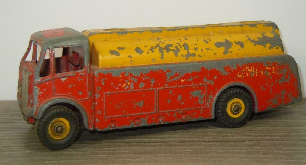 Ik kom bij toeval bijgaande foto tegen van een Shell tankauto in DinkyToy-uitvoering. Zo’n exemplaar had ik zelf ook vroeger, al even afgebladderd als bijgaande versie. Het was een loodzwaar stuk speelgoed (ik vermoedde dat Dinky Toys van puur gietijzer werden gemaakt), waarmee je een jou onwelgevallige klasgenoot of buurjongen de hersens kon inslaan (heb ik nooit gedaan overigens).