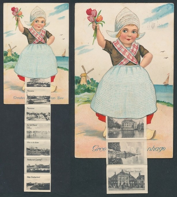 Ze moeten in Den Haag hebben gedacht: als ze in Noordwijk kunnen koketteren met een Volendamse leporello-pop, kunnen wij dat ook. Maar van Noordwijk bestond ook een versie met een niet-zwangere Volednamse: