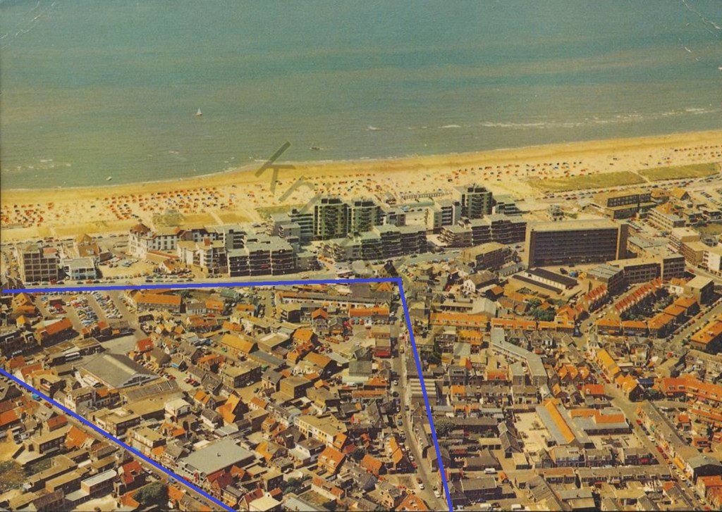 De luchtfoto laat aardig zien waar het oude zeedorp precies gelegen was, namelijk in het omlijnde-schots-en-scheve gedeelde. Daarbuiten werden er wat rechtere lijnen getrokken tussen huizen en percelen. Binnen de lijnen was het planologisch een ongetwijfeld goedbedoelde janboel.