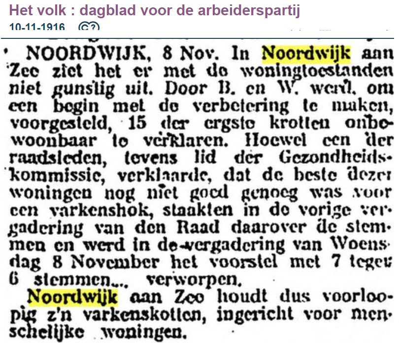 De Noordwijkse correspondent van “Het Volk”, lijfblad van de SDAP, had niet veel op met het openbaar bestuur in Noordwijk in 1916. We zagen al eerder een uitermate kritisch artikel van zijn hand, maar deze mag er ook wezen.
