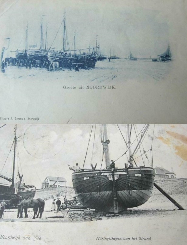 Ik heb het met die bomschuiten onderhand wel gehad. Lelijke boten uit een Noordwijks visserijverleden dat inmiddels wel voldoende uitgemolken is. Maar toch. Deze twee kaarten zijn te aardig om niet toch even voor het voetlicht te halen.