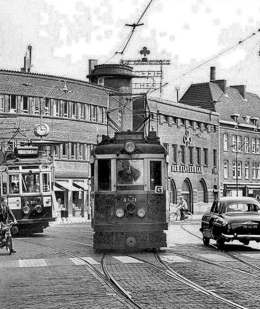 Dat dacht ik ook meteen, die andere tram komt van de Hogewoerd af (dat daar een tram paste!?). Het Klaverblad koffie en thee is nu een winkeltje op de Hogewoerd. Maar wat is dan het vertrekpunt van de tram van Noordwijk in Leiden?