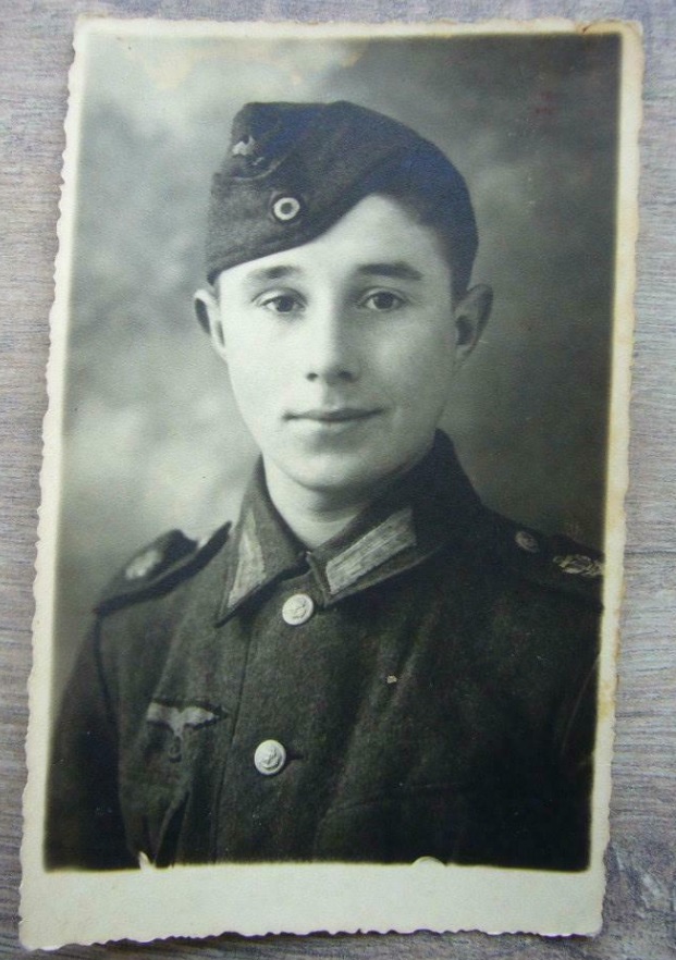 Foto van een lid van de Duitse Kriegsmarine, die onder andere in Noordwijk een verblijfplaats had tijdens WO II. Jan Steen bleek ook foto’s van de vijand te kunnen nemen, want achterop stond zijn stempel. met de mededeling dat de plaat voor nabestelling bewaard zou blijven: