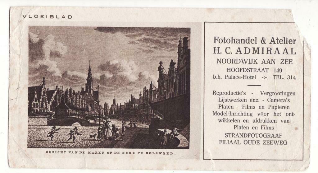 Waarom H.C. Admiraal nu met vloeibladen ging werken met een afbeelding van de markt of de kerk van Bolsward is mij een raadsel. Met een mooie foto of prent van Noordwijk hattie meer eer ingelegd.