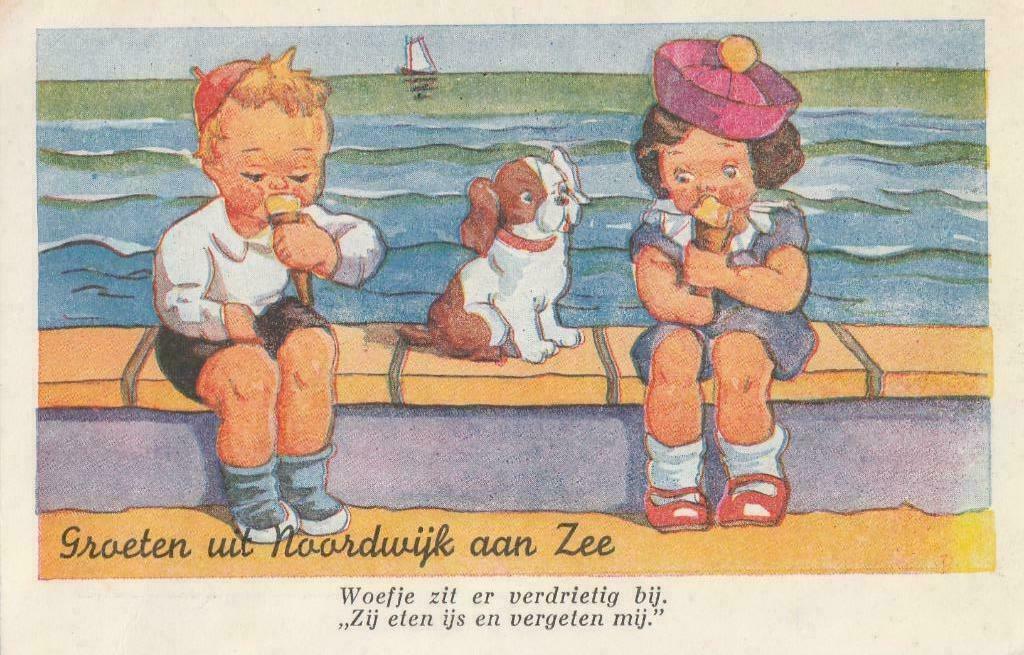 Je moet een hond ook geen ijs geven. Maar op marktplaats, waar deze kaart te koop is, wordt ook dit suikerzakje aangeboden. Als ik dat ‘Woefje’ was…
