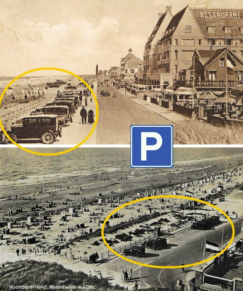 Het parkeerterrein van toen lag op dezelfde plaats als het parkeerterrein van nu. Maar het was kleiner. Want er waren minder automobielen.