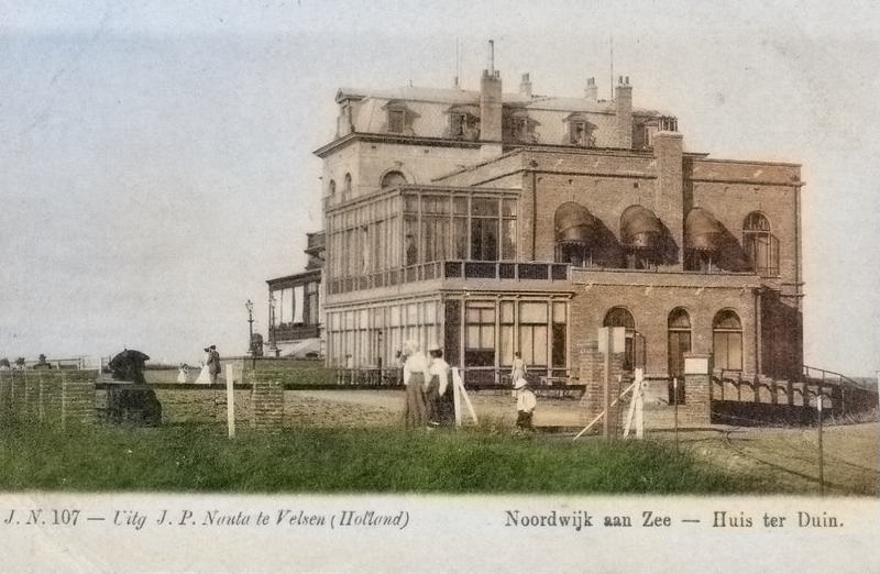 Een oudje van Nauta: Huis ter Duin aan het einde van de 19e eeuw. Met rechtsonder nog een stukje van de spoorbaan, waarlangs de stoomtram zich fluitend en piepend omhoog hees naar de boulevard.