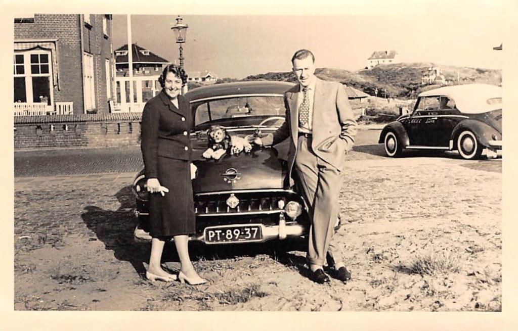 Geen idee waar ik deze foto nu weer heb opgevist, laat staan dat ik weet wie de heer en mevrouw op de foto überhaupt zijn. Ik weet ook niet wat die leeuw doet op de motorkap van die Opel (Olympia?). Ik weet alleen dat de foto genomen is op de hoek van de Zuidboulevard en Boerhaveweg, dat het stukje gebouyw ter linkerzijde tot het “Huis aan Zee” behoort en dat de auto rechts een schitterende Volkswagen Kever Cabriolet is, eigenlijk wel één van de mooiste cabrio’s ooit.