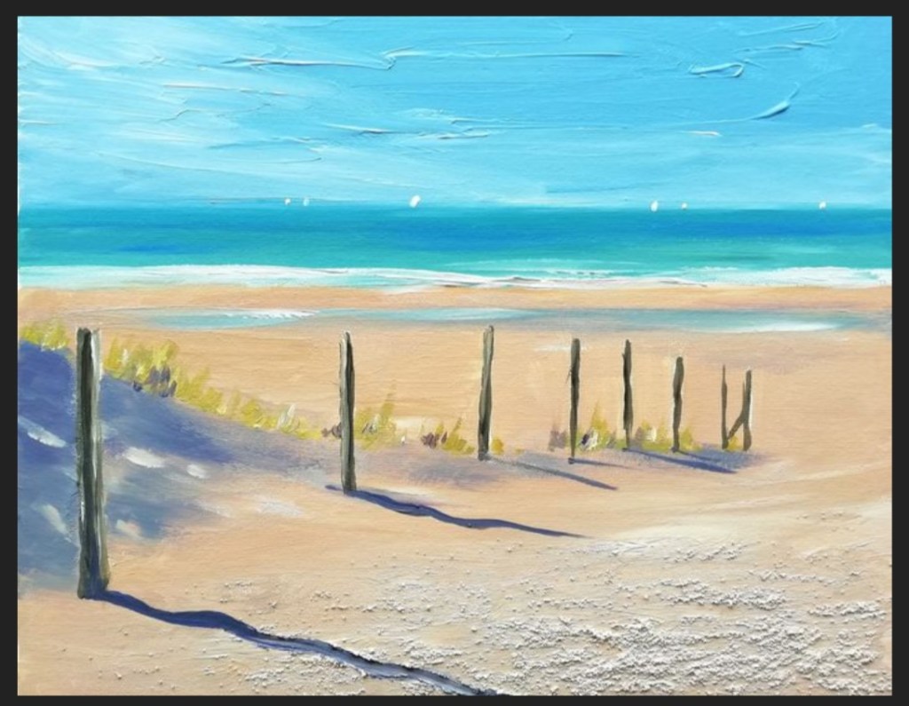 Te Koop op Catawiki: Nicolas Maillet (1965-) – Netherlands, Plage à Noordwijk. Acrylverf op doek, Gemengde techniek – Gesigneerd in de plaat, Gestempeld – 2019
