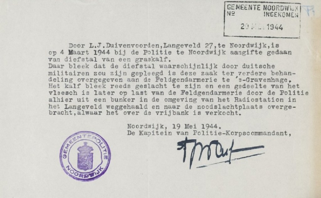 Curieus bericht uit de Tweede Wereldoorlog: Duitse bezetters jatten een kalf in het Langeveld van ene Duivenvoorden, ze slachten het beest, maar nog voordat het vlees verorberd is komt de politie er achter die alles in beslag neemt. “Een gedeelte van het vlees (….) is later over de vrijbank verkocht.”
