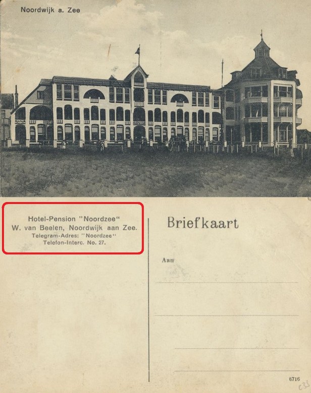 Willem van Beelen schroomde niet om zich als uitbater te profileren van Hotel-Pension Noordzee. En terecht. Maar Willem was zo veel meer. Uit mijn hoofd: allereerst Katwijker van geboorte, maar ook reder met een serie bomschuiten én later ook nog lid van de gemeenteraad: de eerste Noordwijkopzeejer volgens mij in een college van louter Binse aannemers en bollenboeren. En verder natuurlijk hotelier en projectontwikkelaar, want hij zag misschien wel meer dan wie ook de potentie van de Noordboulevard als pleisterplaats voor buitenlandse gasten.