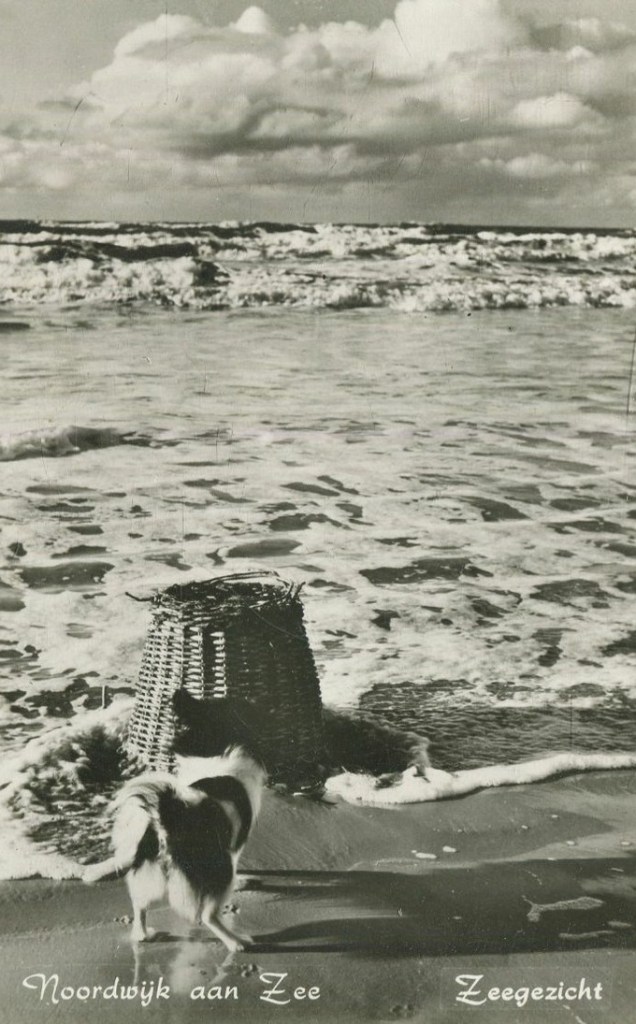 De hond is er zelf ook verbaasd over: een bollenmand in (Noordwijk aan) zee? Die dingen behoorden toch in Noordwijk Binnen te blijven?