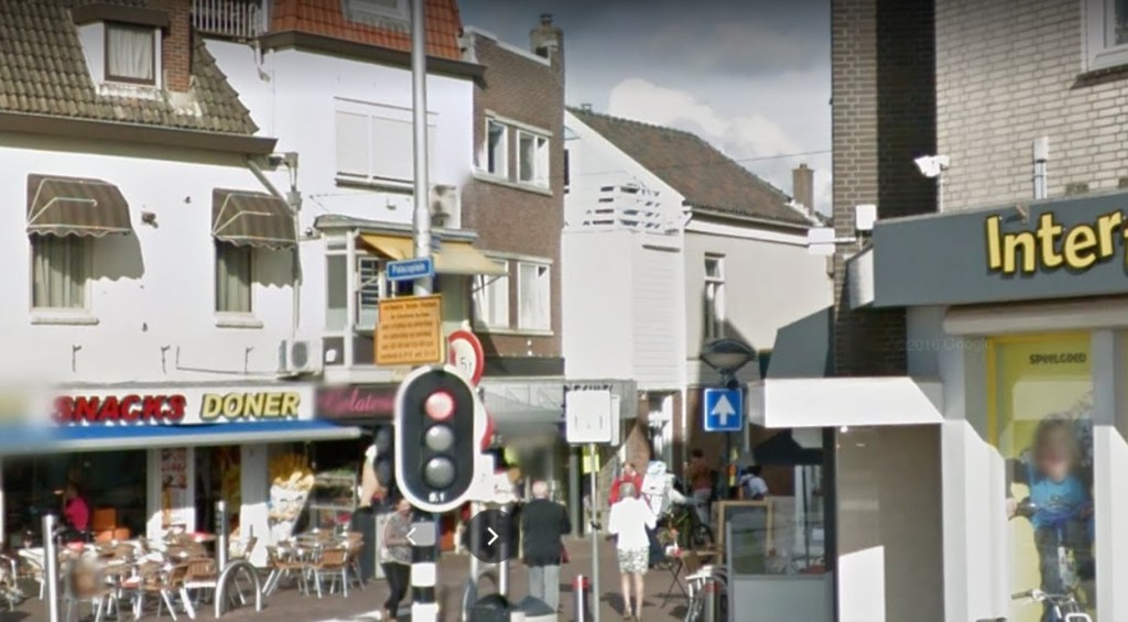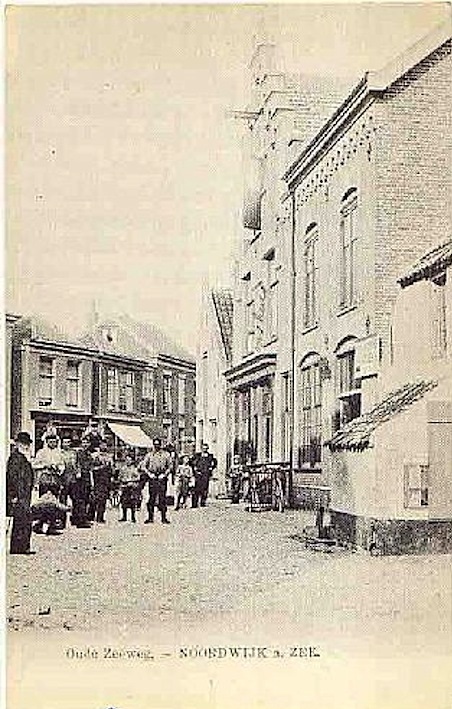 Doorkijkje vanaf het Calisplein richting de Hoofdstraat met links op de hoek nog Pension Zeezicht (tegenwoordig de Groko). Enkele jaren later stond een (andere?) fotograaf op dezelfde plek en drukte onderstaande foto af, zij het met trillende handen: