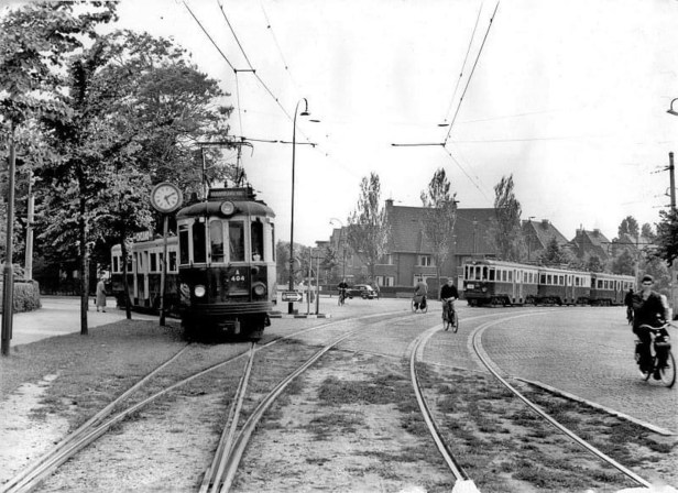 De tram staat in Voorburg. Wij staan met onze rug naar het viaduct. De tram staat in een van de benen van de driehoek in Park Vronesteijn, waar normaal het eindpunt lag van de lokaaldienst van hier naar Scheveningen. Verdere vragen kan ik ook niet beantwoorden.