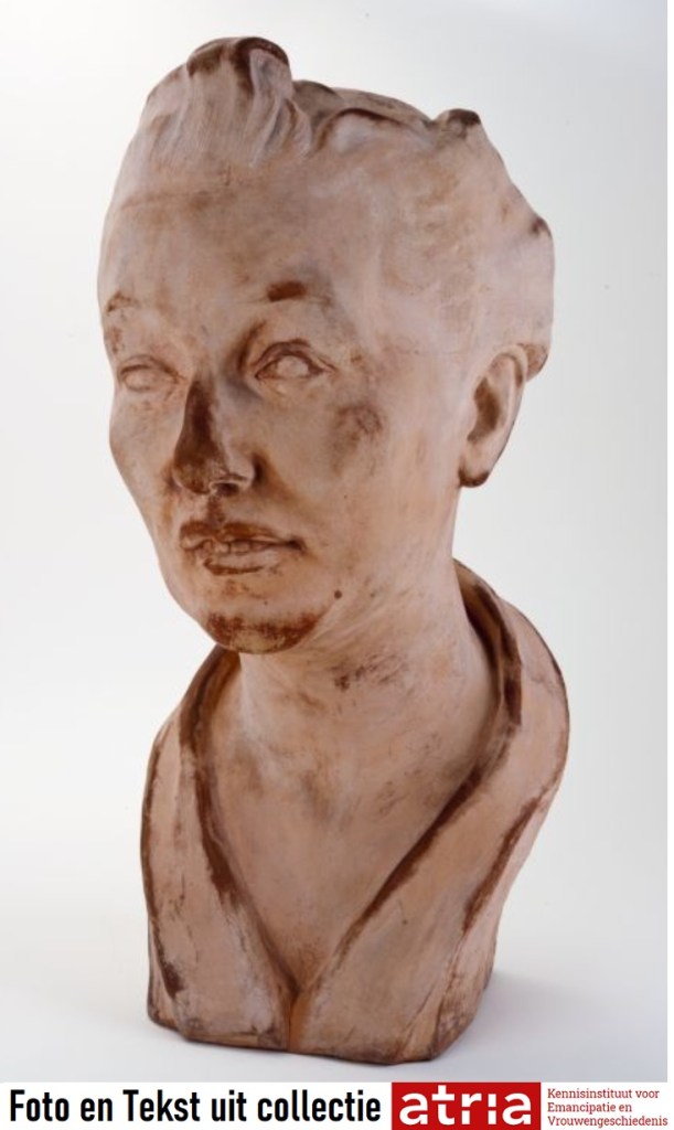 Borstbeeld van Willemijn Posthumus-van der Goot (1897-1989), in opdracht gemaakt door de beeldhouwer Ludwig Oswald Wenckebach (1895-1962). Het terracotta beeld stamt uit 1943 en is gemaakt in Noordwijk, woon- en werkplaats van de beeldhouwer. Het gezin Posthumus-van der Goot was daarheen verhuisd vanuit Amsterdam. Willemijn Posthumus-van der Goot (1897-1989) was in 1930 de eerste gepromoveerde econome in Nederland Een paar jaar later, in 1935, was zij één van de drie oprichtsters van het Internationaal Archief voor de Vrouwenbeweging. Het beeld is in bruikleen gegeven aan de Erasmusuniversiteit van Rotterdam.