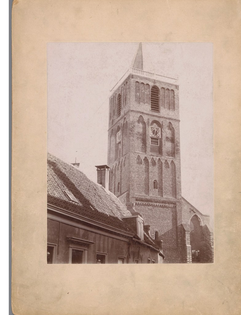 Oude foto – schatting rond 1875 – van de toren van de Hervormde Kerk. Onbekende maker. In collectie Rijksmuseum Amsterdam