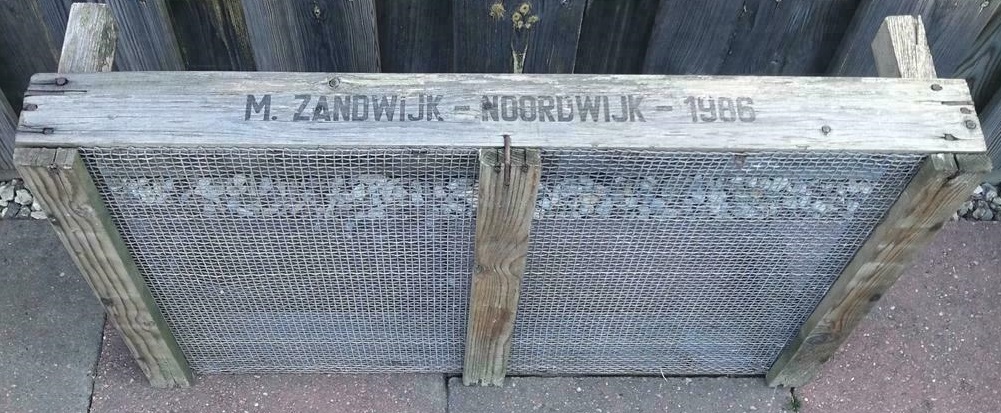 Het ding wordt op marktplaatsaangebonden als ‘brocante houten zeef’, maar iedereen in Noordwijk weet wel beter: daar heette het ding ‘gaasbak’ en het werd gebruikt voor het opslaan der bloembollen. Hoog opgestapeld, met voldoende luchtstromen ertussen hielp het allemaal ook nog bij het drogen der bollen.